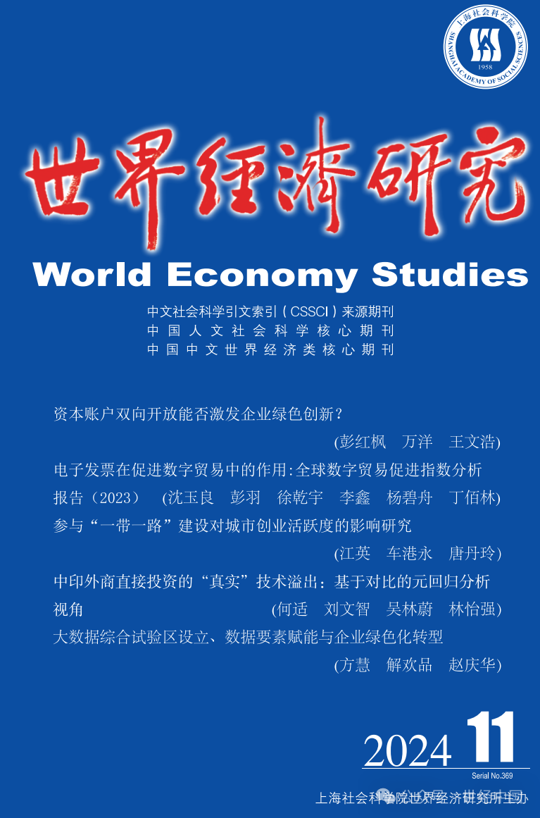 新澳彩 彭红枫教授与博士研究生万洋、新澳彩 教师王文浩合作撰写的论文《资本账户双向开放能否激发企业绿色创新》在期刊《世界经济研究》2024年11期发表。该期刊属于我校A2类期刊。
