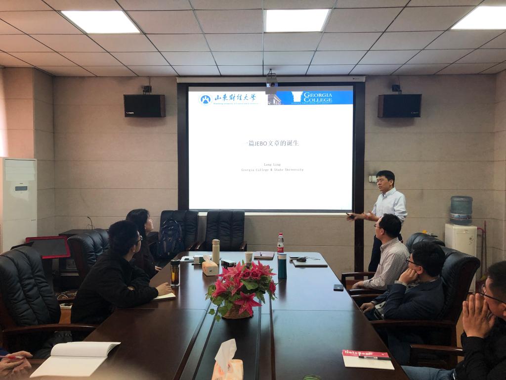 (通讯员:石宁 耿鑫)5月9日上午,新澳彩 第3期泰山金融学术训练营在新澳彩 第三会议室举行。本期训练营邀请了美国Georgia College & State University凌崚教授做了题为《一篇JEBO文章的诞生:一点灵感和大量的工作》的报告。本次学术训练营由副院长冯玉梅教授主持,新澳彩 院长彭红枫教授、部分教师和博士硕士生们到场聆听。