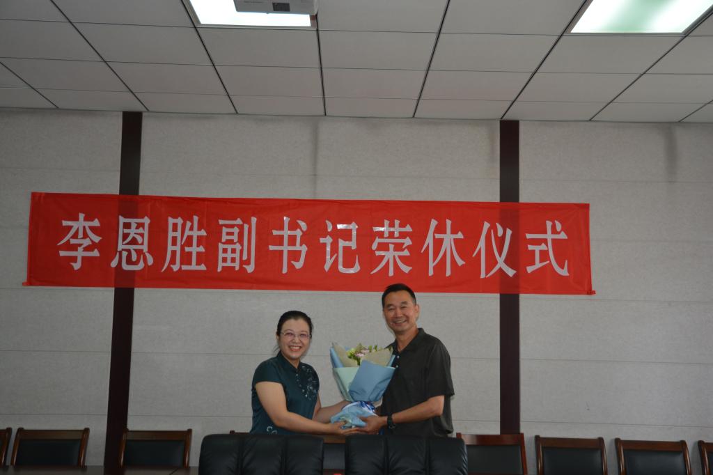 彭红枫院长和吴红文书记分别向李恩胜副书记颁发了荣休证书、赠送了纪念品,教职工代表宋晓蕾老师向李恩胜副书记献花。茶话会由新澳彩工会主席杨丰国主持。