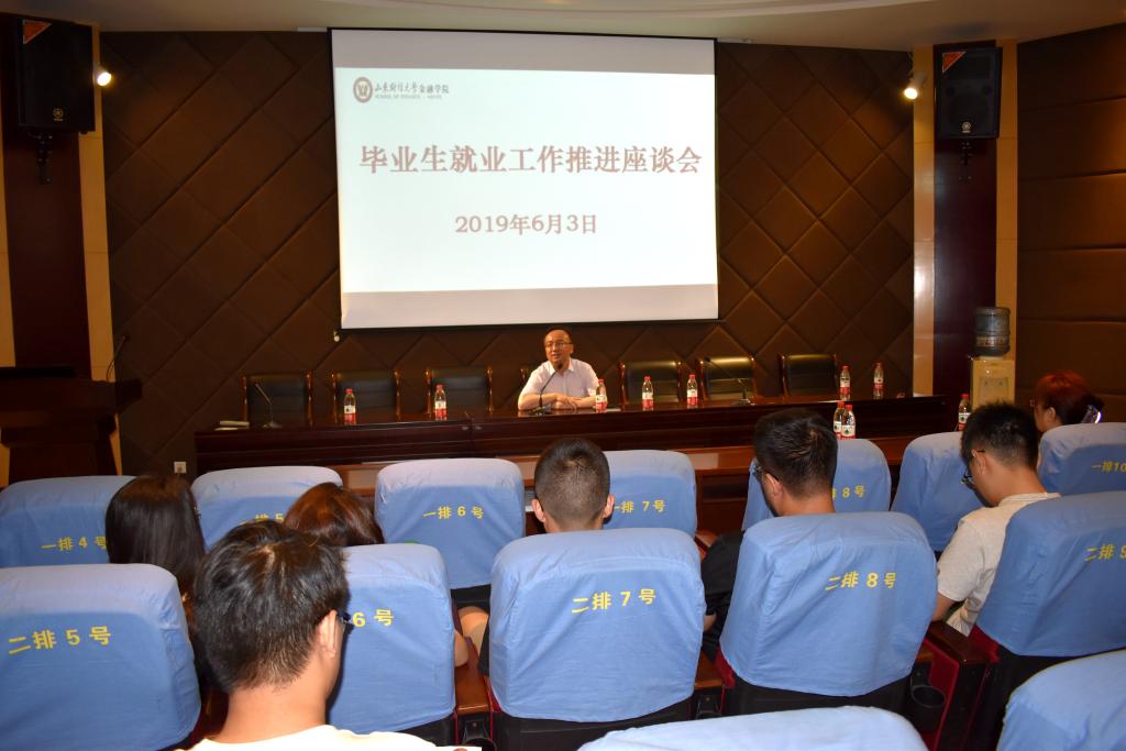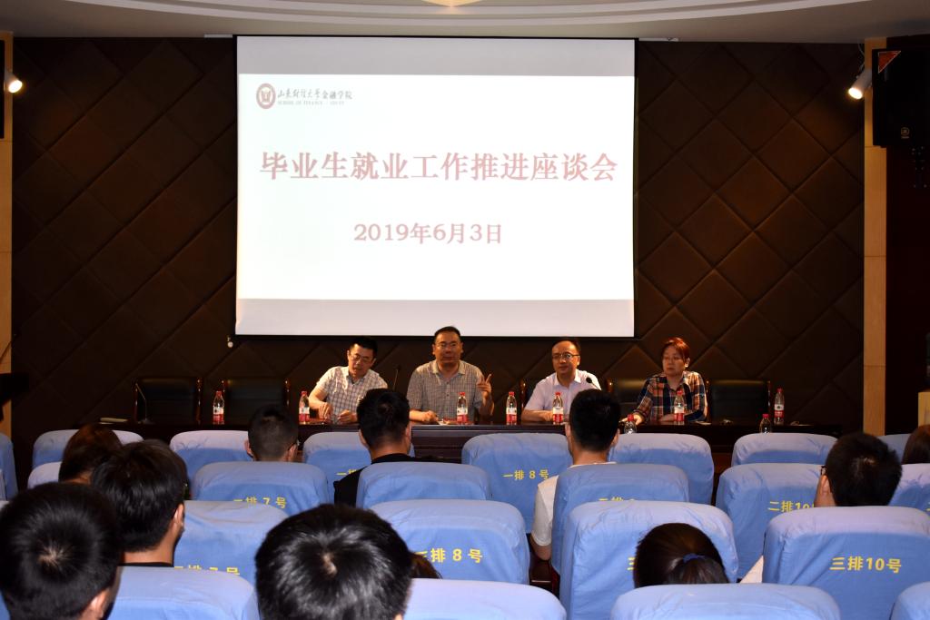 (通讯员:林宁萱)6月3日,金融学院在舜耕校区金融楼学术报告厅举办毕业生就业工作推进座谈会。校就业指导处副处长周广春,新澳彩 党委书记吴红文,新澳彩党委副书记康亚通参加会议,毕业班辅导员及部分毕业生代表参加了座谈会。座谈会由新澳彩党委副书记范志毅主持。