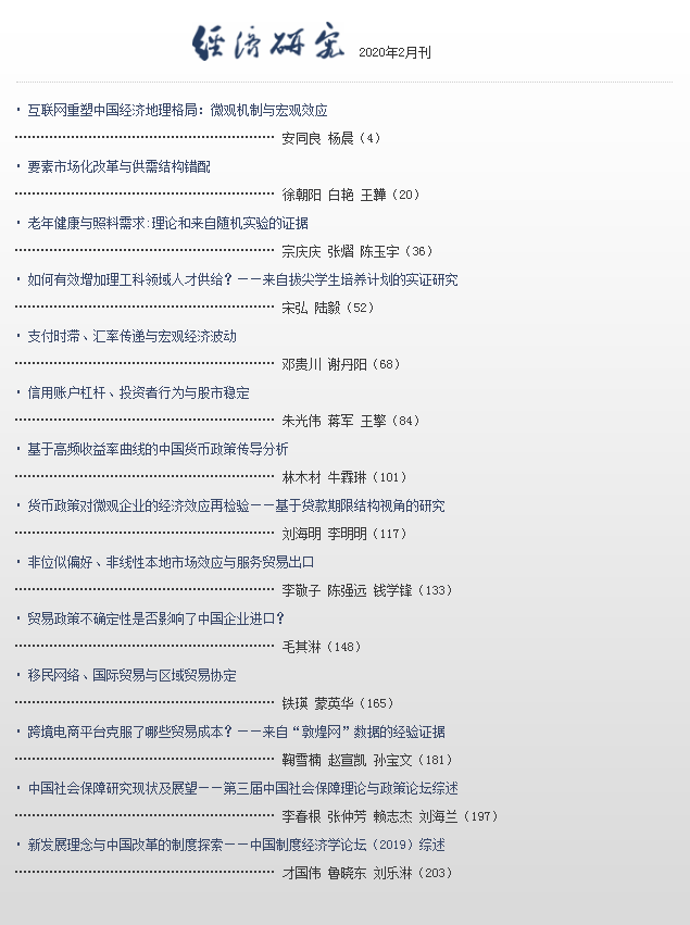 近日,山财大新澳彩 青年教师刘海明、李明明合作撰写的论文《货币政策对微观企业的经济效应再检验——基于贷款期限结构视角的研究》在《经济研究》2020年第2期上发表。