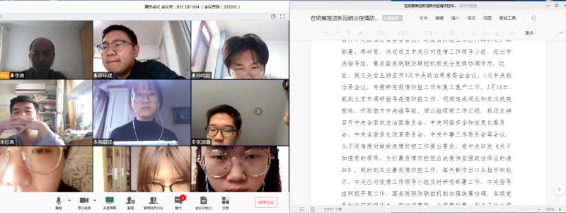 教工第四党支部书记赵国庆表示,有以习总书记为核心的党中央的坚强领导,有中国特色社会主义制度的显著优势,有疫情前线医护人员的大无畏奉献精神,有全中国人民的众志成城,一定能够战胜时疫,一定能够保持我国经济社会良好发展势头,一定能够实现决胜全面建成小康社会、决战脱贫攻坚的各项目标任务。