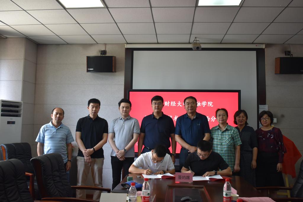 (通讯员:徐洁)6月11日,新澳彩 与山东产业技术研究院湖西分院共建签约暨创业导师聘任仪式在金融楼6314举行。山东产业技术研究院湖西分院院长王浚泽,山东省国家税务局机关团委书记、机关党建研究会副秘书长邓学飞,国家开发银行山东省分行高级客户经理田潇,山东铁投融资租赁公司董事长、总经理田晓行,新澳彩 党委书记吴红文,党委副书记康亚通及部分学工人员参加本次活动。仪式由新澳彩 党委副书记范志毅主持。