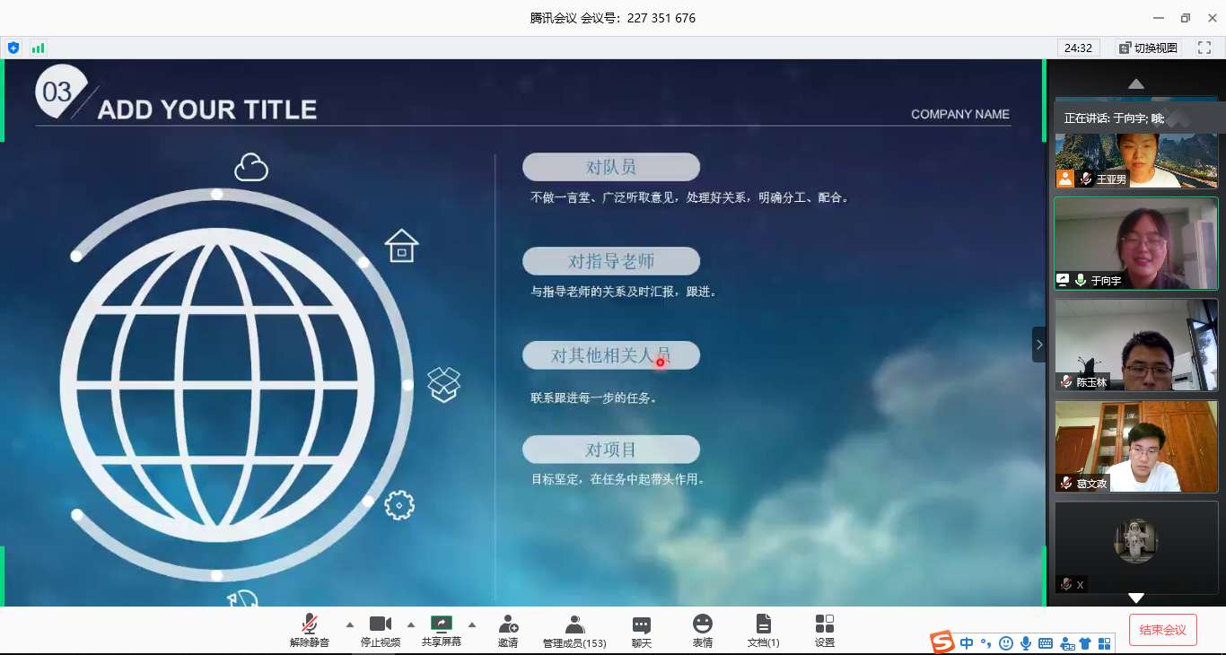 随后,于向宇学姐以PPT形式就如何进行团队组建、如何进行项目的选择、项目队长担负的职责以及如何准备并开展项目进行了详细的介绍。葛文政学长围绕自己的参赛经历,从项目来源、项目分工、比赛流程等方面向同学们分享了自己积累的经验,并且对参加“国创计划”比赛的优势进行分析,鼓励同学们积极参加比赛。紧接着,陈玉林老师着重介绍了创新创业比赛的重要性、学校对此类竞赛的高度重视并以考研为方向展开分析了参加此类竞赛的重要性,并且根据自己经验为同学们提出了宝贵的建议。随后,王亚男老师针对“国创计划”比赛和“互联网+”比赛的背景、项目类型、赛事主题等进行了更加详细的介绍,使同学们对两项比赛有了更深层次的了解。紧接着,王亚男老师列举了往年新澳彩 在两项比赛中所获得的优秀成绩。会议最后,王亚男老师对同学们提出的各种问题进行了详细的解答,直播会圆满落幕。