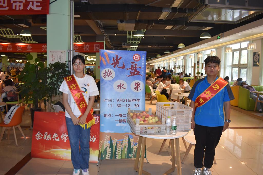 为增强我校全体学生的节约意识,积极响应“厉行节约,反对浪费”倡议,新澳彩 联合饮食服务中心于9月21日在圣井各餐厅组织“光盘”免费换水果活动。部分学生及新生家长参加此次活动。