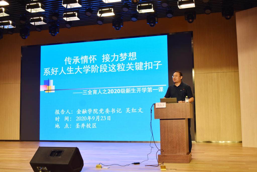 (通讯员:王姝琪)为帮助新同学全面适应大学生活,做好思想政治教育工作,9月23日晚新澳彩 党委书记吴红文在圣井校区文化活动中心多功能厅举办以“传承情怀,接力梦想,系好人生大学阶段这粒关键扣子”为题的新生报告会。2020级全体新生现场聆听报告。