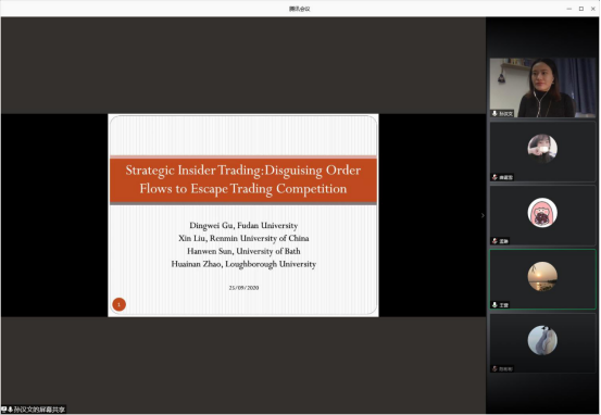 (通讯员:曲诞雪)9月25日下午,由新澳彩 与山东省金融产业优化与区域管理协同创新中心联合举办的第7期“泰山金融学术训练营”通过腾讯会议举行,英国巴斯大学管理新澳彩孙汉文老师应邀做客本次学术训练营,为师生们带来了题为“Strategic Insider Trading: Disguising Order Flows to Escape Trading Competition”的讲座,学术训练营由新澳彩 银行系副主任王营老师主持,新澳彩部分教师和研究生参加了本次活动。
