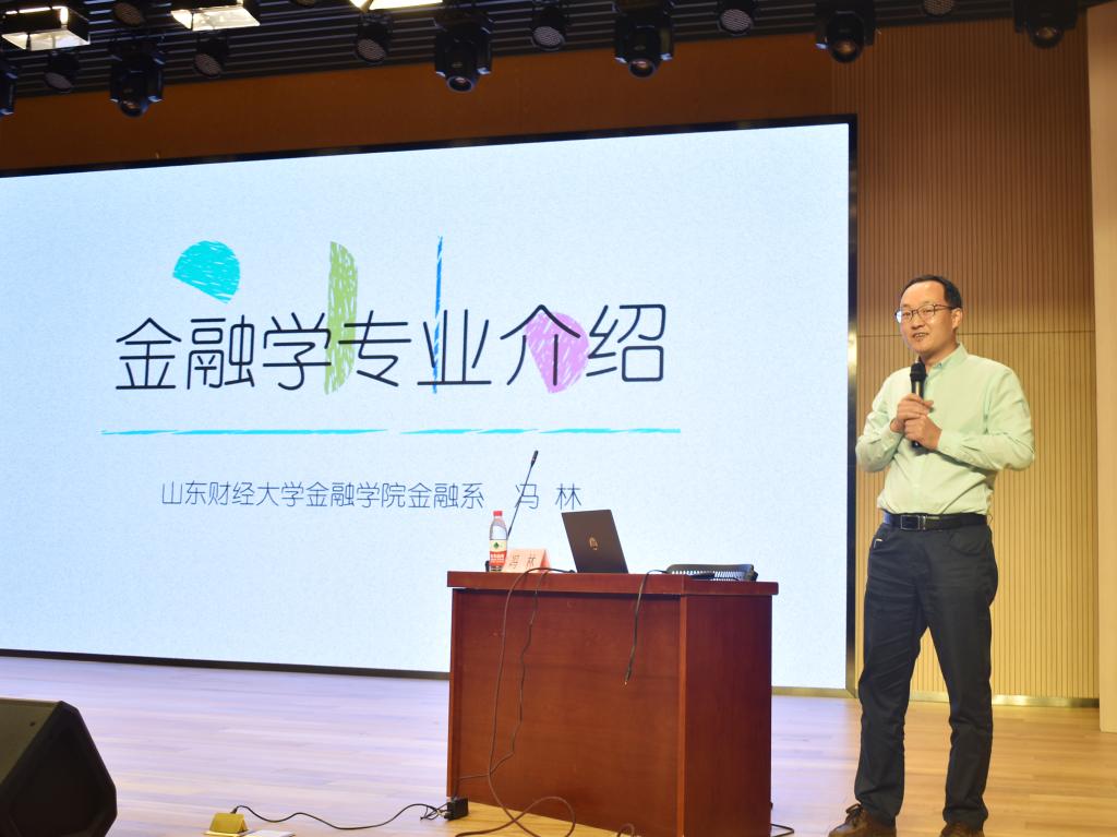 冯林副院长向同学们介绍了金融学专业的概况。首先,他向我们介绍了金融专业的发展历史、市场需求变化以及就业前景。他从三个方面向同学们展示了什么是金融,一是投资,二是中介活动,三是融资。随后,他提出了当今时代金融行业对社会发展的作用,如推动经济增长,降低社会交易成本,分散风险水平、保持经济稳定等等。讲座最后,他强调了学习金融学的必要性和职业前景,并介绍了山东财经大学金融学专业的办学经验及优势。