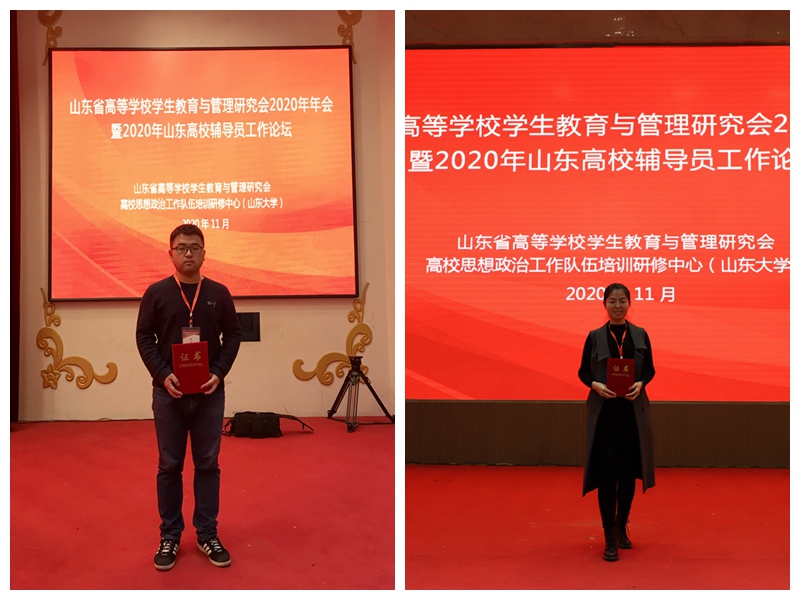 11月18日至19日,由省委教育工委指导,山东省高等学校学生教育与管理研究会、教育部高校思想政治工作队伍培训研修中心(山东大学)组织的2020年山东高校辅导员工作论坛在潍坊市举办。我院辅导员陈玉林、王亚男分获二等奖、三等奖。