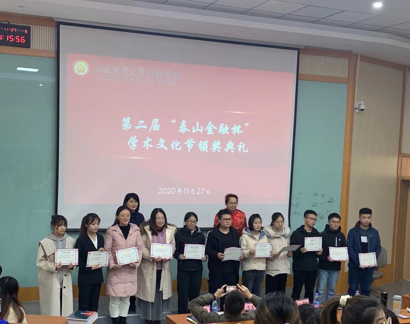 (通讯员:胡芷漩)11月27日下午两点,新澳彩 第二届“泰山金融杯”学术文化节颁奖典礼在第三阶梯教室如期举行。新澳彩 党委副书记范志毅,副院长冯玉梅,研究生辅导员许静、邵新昌以及全体第九届研究生会代表、2020级新生代表参加了此次颁奖典礼。颁奖典礼由范志毅主持。
