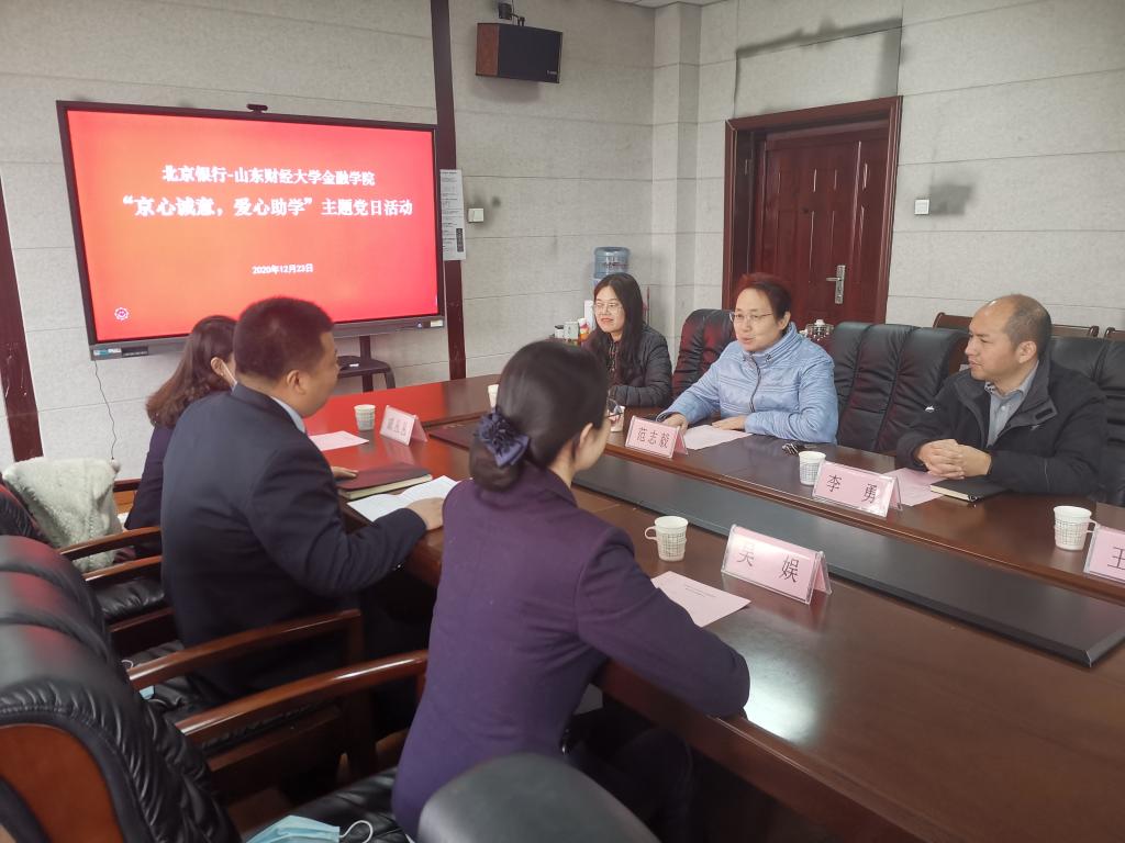 12月23日上午,北京银行千佛山支行爱心助学金捐赠仪式暨“京心诚意,爱心助学”主题党日活动在舜耕校区新澳彩 第三会议室举行。北京银行千佛山支行副行长盖元,员工戚丛丛、吴娱,我院辅导员李勇、王丽、徐洁及受助学生参加了本次活动。活动由党委副书记范志毅主持。