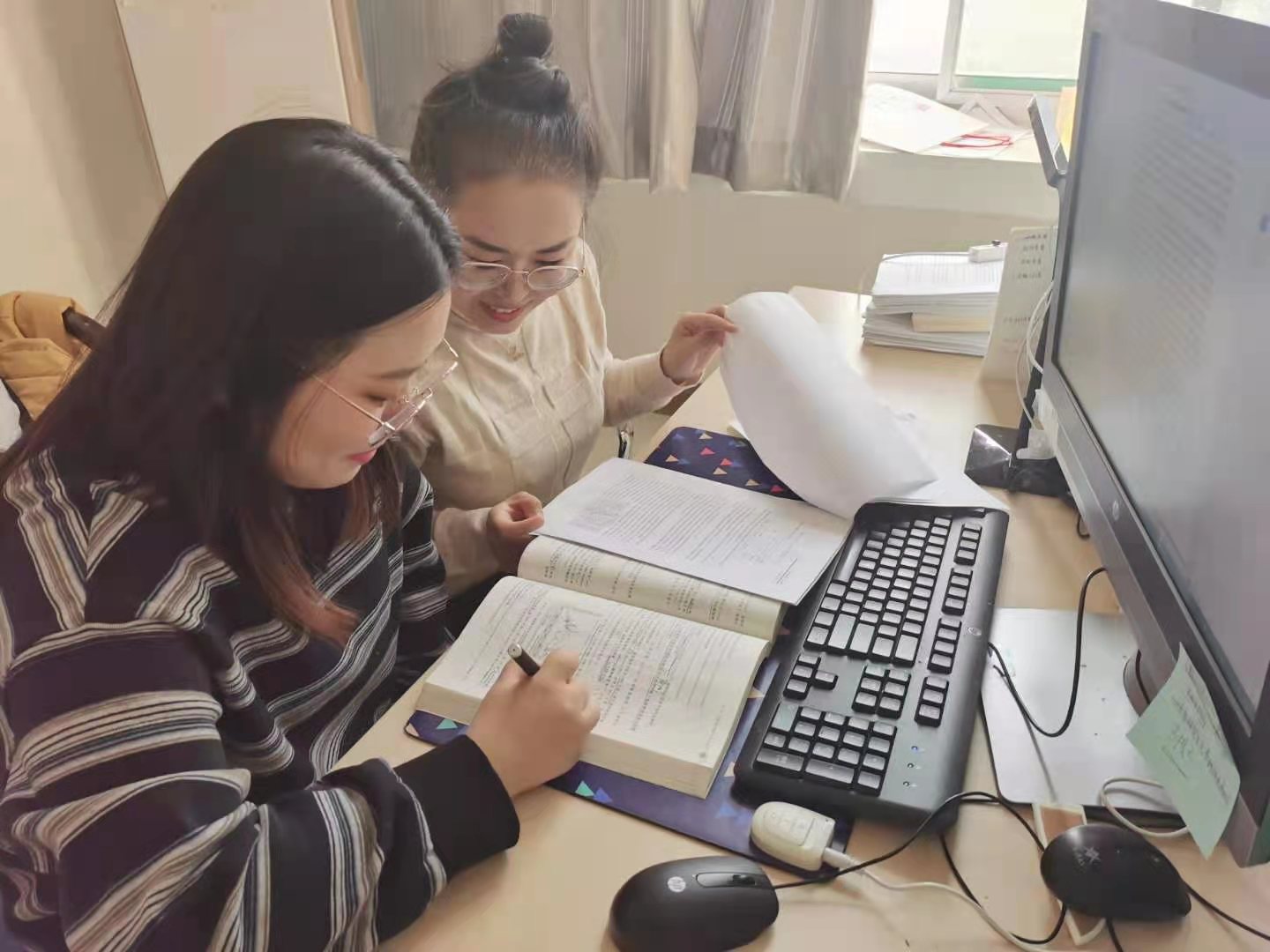 无论是写论文还是做科研,团队合作都是必不可少的。刘媛表示科研团队的配合主要是交流,也向我们介绍了团队合作的主要流程:她所在的团队有定期的师门组会和课题组会,每周一次或者两周一次。每个同学会汇报自己当前阶段科研情况的进展或遇到的困难,导师和师门的同学们会相互讨论或者给出意见,就是在这种团队交流中将论文一步一步完成的。私下里,研究方向类似的师兄师姐、师弟师妹们也有自己的讨论组,有时聊聊生活,有时聊聊学术科研。“沈丽老师的师门一直保持这种交流模式,也一直处于在一种相对轻松的状态下搞科研。”刘媛说道。