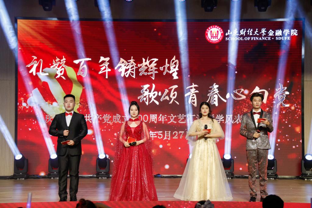 (通讯员:夏驰骜)一路风霜初心不变,百载砥砺换了人间。为传承红色基因,弘扬爱党爱国情怀,表彰优秀的金融学子,5月27日晚,新澳彩 于圣井校区文化活动中心举办“礼赞百年铸辉煌,歌颂青春心向党”庆祝中国共产党成立100周年文艺汇演暨学风表彰大会,新澳彩 党委宣传部副部长张艳霞、党委学生工作部副部长孙丽华、就业指导处副处长杜丽娜、新澳彩 党委书记吴红文、院长彭红枫、党委副书记范志毅、工会主席杨丰国及新澳彩全体辅导员、各兄弟新澳彩师生代表近500人参加本次活动。