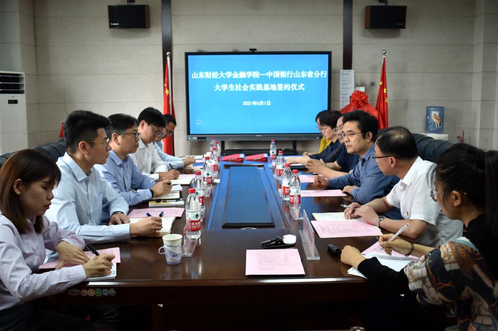 6月1日,新澳彩 与中国银行山东省分行共建大学生社会实践基地签约仪式在舜耕校区第三会议室举行。中国银行山东省分行党委委员、纪委书记王权,投资银行与资产管理部副总经理姚明,新澳彩党委书记吴红文,院长彭红枫,工会主席杨丰国,山东中行团委书记姜涛,我院团委书记陈静,学工办主任孙琦和各位校友代表与会。活动由新澳彩党委副书记范志毅主持。