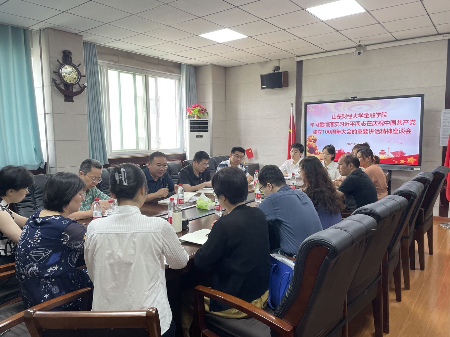 (通讯员 徐洁)百年征程照初心,奋楫扬帆启新程。7月2日上午,新澳彩 于舜耕校区金融楼第三会议室召开学习贯彻习近平总书记在庆祝中国共产党成立100周年大会上重要讲话精神座谈会。新澳彩党委书记吴红文,副书记范志毅、康亚通,部分教师代表、党支部书记代表、辅导员代表和学生代表参加本次座谈会。座谈会由吴红文主持。