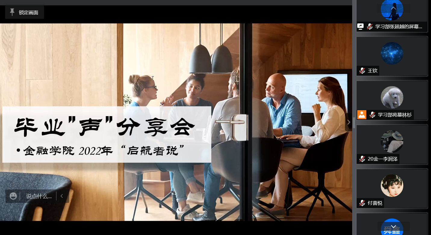 (通讯员:苑慕林杉 付喜悦)为进一步帮助学生做好职业生涯规划,4月22日、28日晚,新澳彩 举办2022年“启航者说”毕业生线上经验分享会。邀请了我院2022届优秀毕业生代表进行经验交流,答疑解惑。本次活动由邵珠建老师主持,各年级近500名学生线上聆听了分享会。