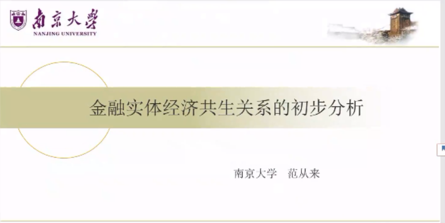 范从来教授从资金向虚结构错位的问题出发,对比分析了美、日、德、中四国金融与实体经济的利润占比;从如何让RLE指标更具有可比性的角度,分析了中国银行业的结构性的问题。范从来教授以43家银行的重组情况出发,逐一考察了银行高盈利和多重组之间的矛盾,并用多门槛回归分析,分析了产能利润率与实体经济增长之间的非线性关系,回答了金融向实体经济让利的政策空间的问题。同时,范从来教授应用共生理论分析了经济与金融的共生关系,度量了金融与实体经济的共生度,并进一步分析了经济与金融共生度的影响路径,通过实证研究检验了金融对经济共生度的影响和经济对金融共生度的影响。