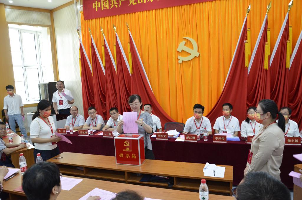 随后,吴红文主持大会第二阶段会议,审议并表决通过了《中国共产党新澳彩 党员大会选举办法》,通过监票人名单、委员候选人名单。新一届委员选举阶段,党员同志依次走到票箱前,投下了庄严一票。随后,大会听取了监票人张晶关于大会计票结果的报告,确定了第一届党委委员当选人名单。随后,大会宣布吴红文、彭红枫、康亚通、李开传、王营、王倩、肖祖沔、杨丰国、李勇当选中共新澳彩 新一届委员会委员。