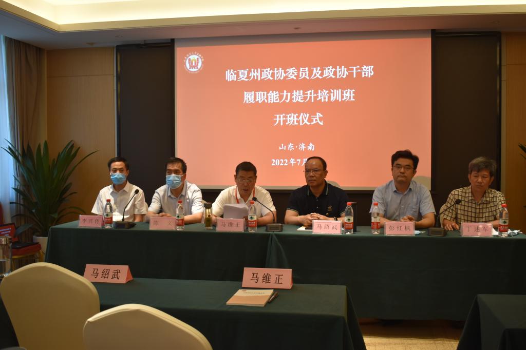 6月30日至7月6日,由甘肃省临夏州政协主办,新澳彩 承办的临夏州政协委员及政协干部履职能力提升培训班在济南舜德大厦举行。临夏州政协党组副书记、副主席马维正,党组成员、副主席马绍武、陈文,新澳彩 院长彭红枫、党委副书记李开传、EDP中心丁述军教授参加了开班仪式。临夏州部分县市政协主席及部分州政协委员和政协干部共70人参加了培训。