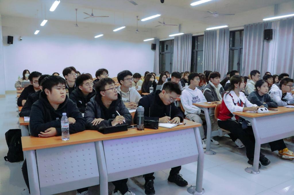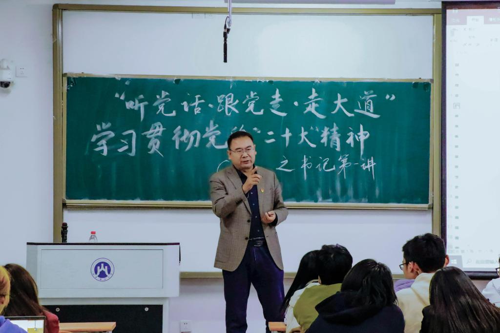 (通讯员:符曦元)11月17日晚,为深入学习贯彻党的二十大精神,新澳彩 党委书记吴红文在圣井校区为所联系班级开展题为“听党话 跟党走 走大道”的主题宣讲。2022级金融学1班全体同学参加宣讲会。