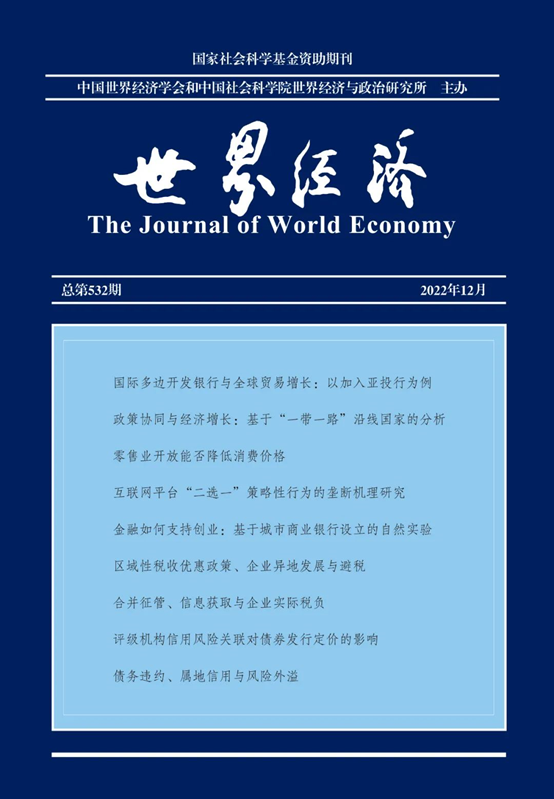 新澳彩 彭红枫教授与武汉大学经济与管理新澳彩余静文副教授合作撰写的论文《政策协同与经济增长:基于“一带一路”沿线国家的分析》在《世界经济》2022年第12期发表。该期刊属于我校A1期刊。