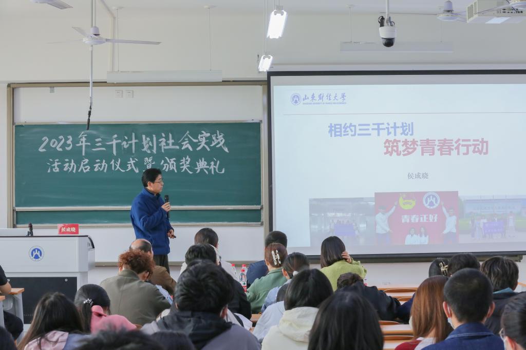 为深入学习贯彻党的二十大精神,进一步引导广大青年学生在社会实践中受教育、长才干、做贡献,4月11日,新澳彩 于圣井校区举办2023年度暑期“三千计划”社会实践活动启动仪式暨颁奖典礼。新澳彩 副院长王营、指导教师代表侯成晓、学工办主任李勇、团委书记郭夕熙、辅导员王亚男老师、王蕴玮老师出席。获奖团体、个人及部分学生代表参加了本次活动。