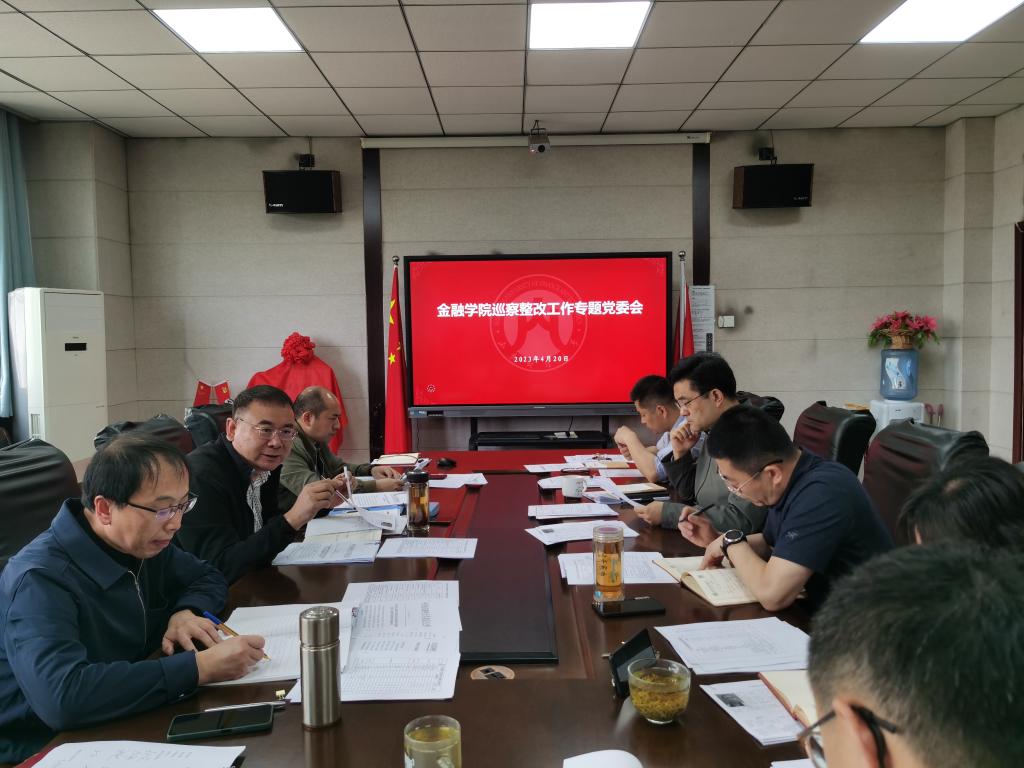 4月20日,新澳彩 党委在舜耕校区第三会议室召开巡察整改工作专题会议。新澳彩党委书记吴红文,院长彭红枫,副书记康亚通,副院长王营、王倩、肖祖沔,党委委员杨丰国、李勇参加了会议。党委专职组织员邵珠建列席会议。