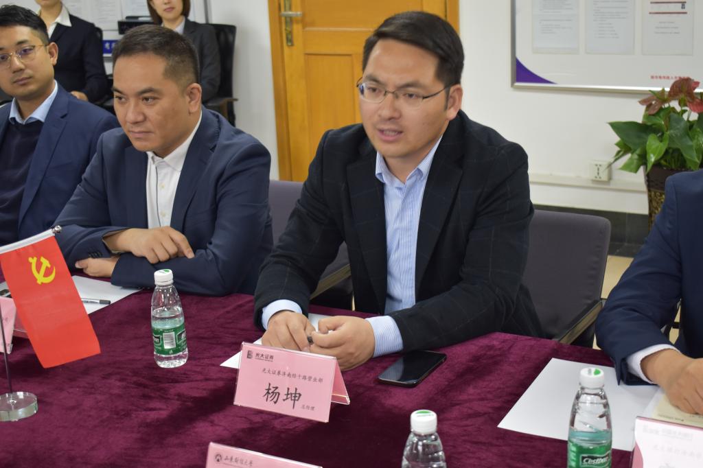 吴红文首先介绍了新澳彩 的发展现状、专业建设以及人才培养等情况。我院研究生兼职导师、光大证券济南经十路营业部总经理杨坤对新澳彩 一行表示热烈欢迎。杨坤从企业经营理念,企业规模、人才培养机制等方面介绍了光大证券的发展历程和人才战略。