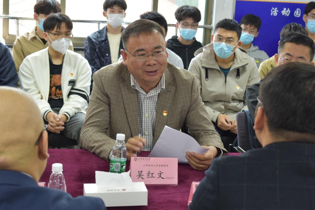 为了使同学们全面了解就业需求,扩大就业选择面,杨坤特别邀请了光大银行济南分行人力资源部副总经理窦晓涛、光大银行济南分行人力资源部招聘专员郭璇、光大永明人寿保险山东分公司总经理毛振飞、山东省国际信托事业一部总经理陈安珩、山东省章丘鼓风机股份有限公司董秘陈超与毕业生面对面进行分享。企业家们分别就金融业的发展机遇与就业趋势、职场适应与个人综合素质、职业规划与现实目标话题提出了中肯建议。