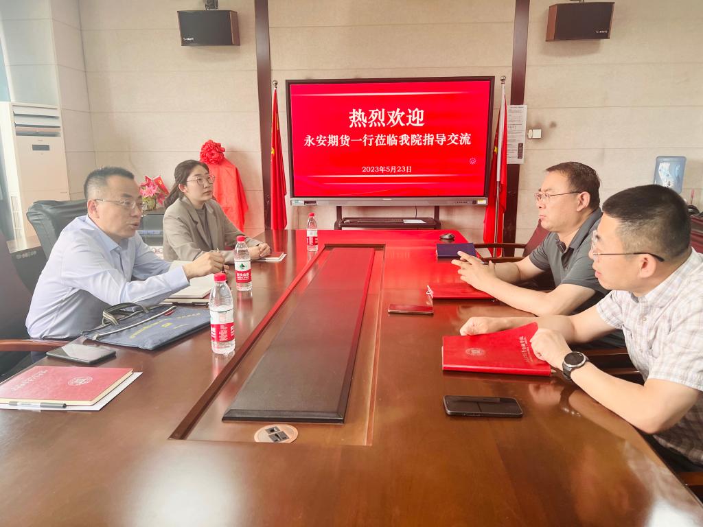 5月23日下午,永安期货山东分公司总经理李庆国一行来我院进行交流访问。新澳彩 党委书记吴红文、副书记康亚通、团委书记郭夕熙参加座谈。