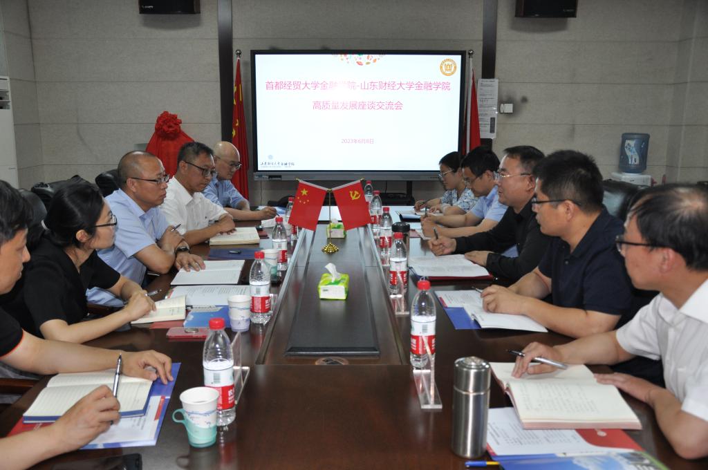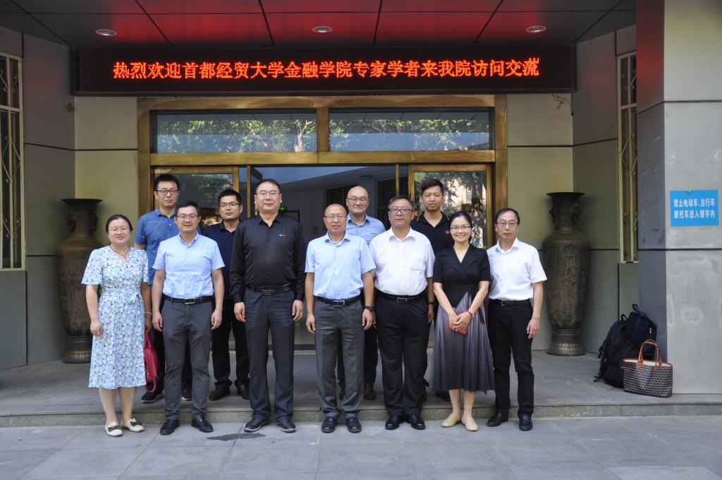 6月8日下午,首都经贸大学新澳彩 党委书记刘文川、副院长陈奉先、赵大萍,余颖丰,金融系主任何枫来我院访问。新澳彩党委书记吴红文、副院长王营、肖祖沔、办公室主任杨丰国、金融系主任梁巧慧参加了座谈交流。