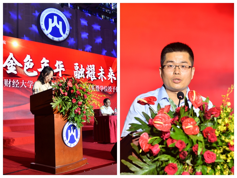2009级优秀校友代表李劲松结合个人十年成长经历,用信用、时间和杠杆三个词语与学弟学妹们共勉,祝福师弟师妹们在各自岗位上发光发热,持续引领中国金融发展、金融创新和产业赋能。