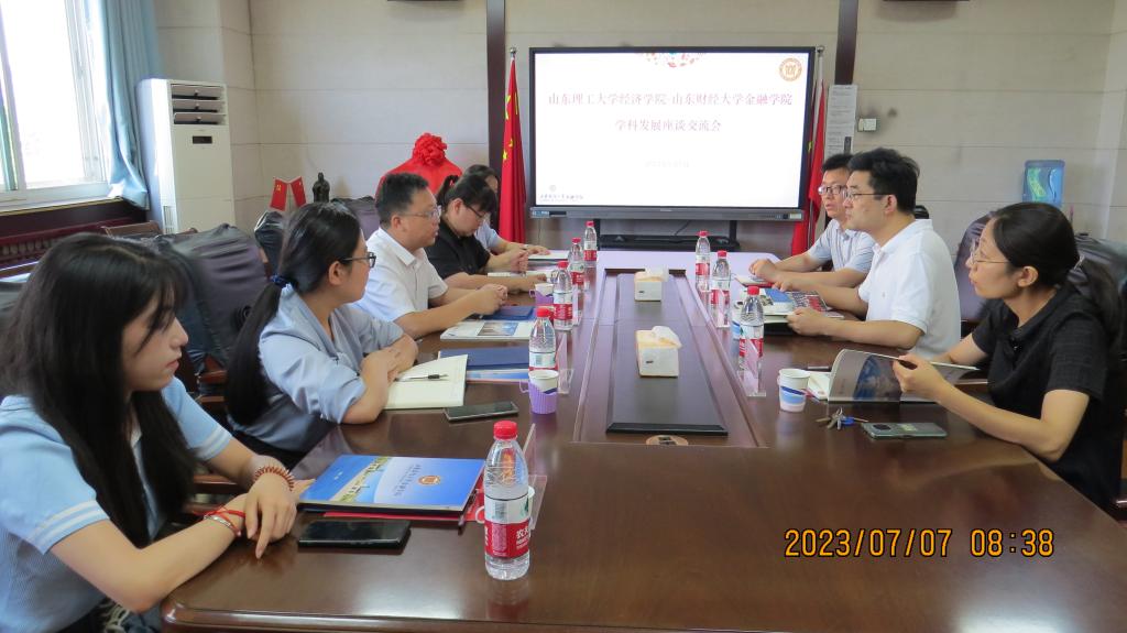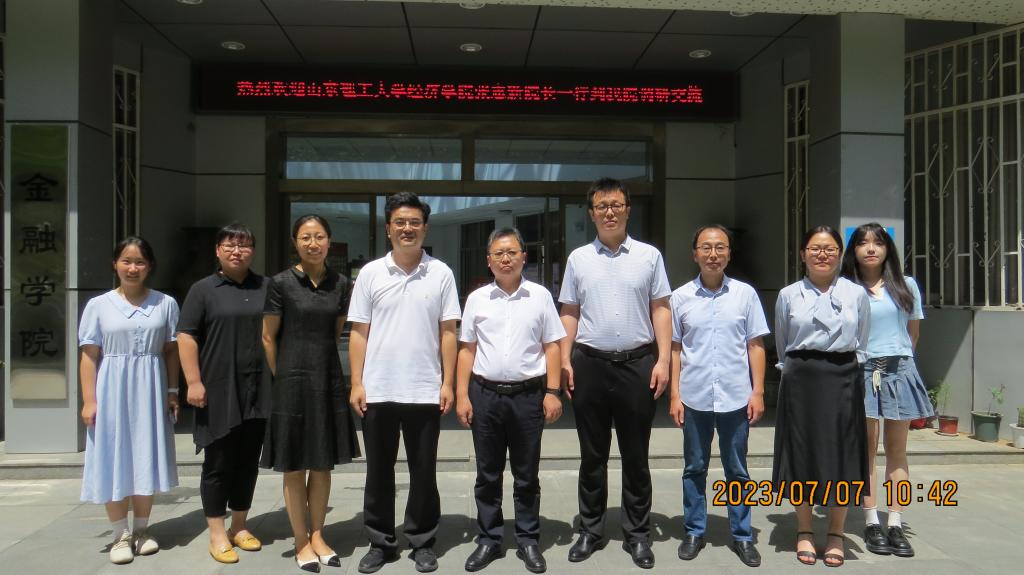 7月7日上午,山东理工大学经济新澳彩院长张志新、金融科技系系主任孙雁冰、教师于丛等5人来我院调研交流。我院院长彭红枫、金融科技系系主任孟纹羽、副主任陈彬彬参加了座谈交流。