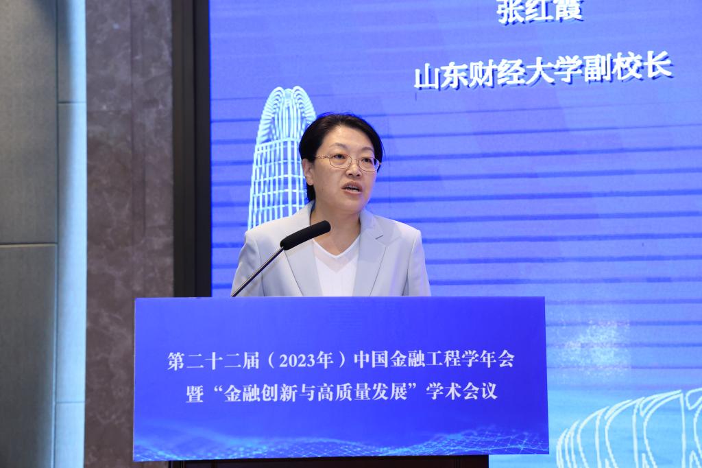 2023年10月13至14日,由中国金融工程学年会、新澳彩 以及山东省金融学会联合主办的第二十二届(2023年)中国金融工程学年会暨“金融创新与高质量发展”学术会议在济南召开,会议采用线上线下相结合的方式举办。本届年会由大会主旨报告和主题报告、期刊圆桌论坛以及15个平行学术论坛组成。来自中央财经大学、武汉大学、清华大学、中国人民大学、南开大学、浙江大学、南京大学、厦门大学、中山大学、北京师范大学、山东大学、上海交通大学、湖南大学、西南财经大学、暨南大学、对外经济贸易大学、中国人民银行山东省分行以及山东省金融学会等百余所高校和科研机构的300余位专家学者参加了此次会议。大会视频直播累计观看量超过3万人次。本次年会共收到了248篇中英文投稿论文,经过组委会评审,最终录取135篇论文参会交流,并评选出10篇优秀论文(一等奖2篇,二等奖4篇,三等奖4篇)。参会论文主题涵盖金融风险、行为金融、资产定价、家庭金融、数字普惠金融、金融市场开放、绿色金融、碳金融以及气候金融等传统金融领域和跨学科交叉金融领域。学校副校长张红霞教授出席大会开幕式并致辞。