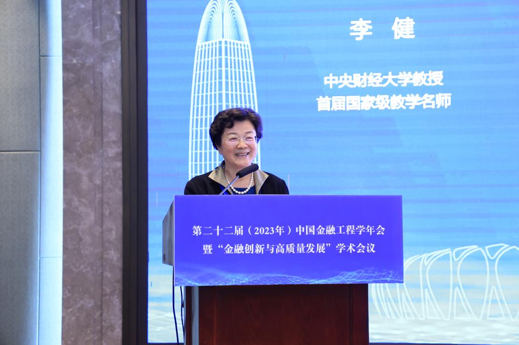 金融工程学科创新型人才培养”主题演讲环节由山西财经大学党委常委、副校长沈沛龙教授主持。中央财经大学教授、首届国家级教学名师李健教授发表了题为“努力提高站位,建好一流课程”的报告。在报告中,李健教授提出以下五个问题,以推进一流课程的建设:一是积极探索金融专业课程建设的集群化路径,以提升课程体系的质量;二是建立起课程教材持续化建设的机制,坚持科研先行,不断更新和优化教材的编写与修订;三是构建课程建设的团队合作机制,建立健全“共商教改、共建课程、共研课题、共编教材、共做资源”的“五共”团队工作机制;四是针对开放性一流课程建设的模式与评价,提出“大批同名课程同时上线利弊如何”、“开放课程建设上线后如何保持教学可持续性”等问题;五是建立起课程建设持续化的有效机制,课程建设队伍需要不断提高政治站位、学术站位、组织站位、师德站位,更多地关注人才培养和服务社会。