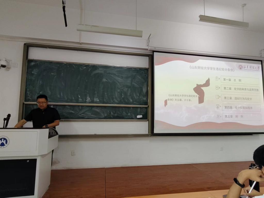 舜耕和圣井校区辅导员根据实际情况,采取在校生线下集体班会,部分毕业生线上班会的形式,确保专题班会学生全覆盖。老师们通过《条例》PPT和详实的教案,从总则、处分的种类和适用范围、违纪行为和处分、处分权限和程序等方面全程讲解。辅导员老师们利用各类高校警示案例视频、图片,并结合工作经验,对《条例》进行深入浅出的解读,让纪律教育更加生动,让校纪校规“跃然”眼前,让同学们更容易接受,进一步增强了学习效果。