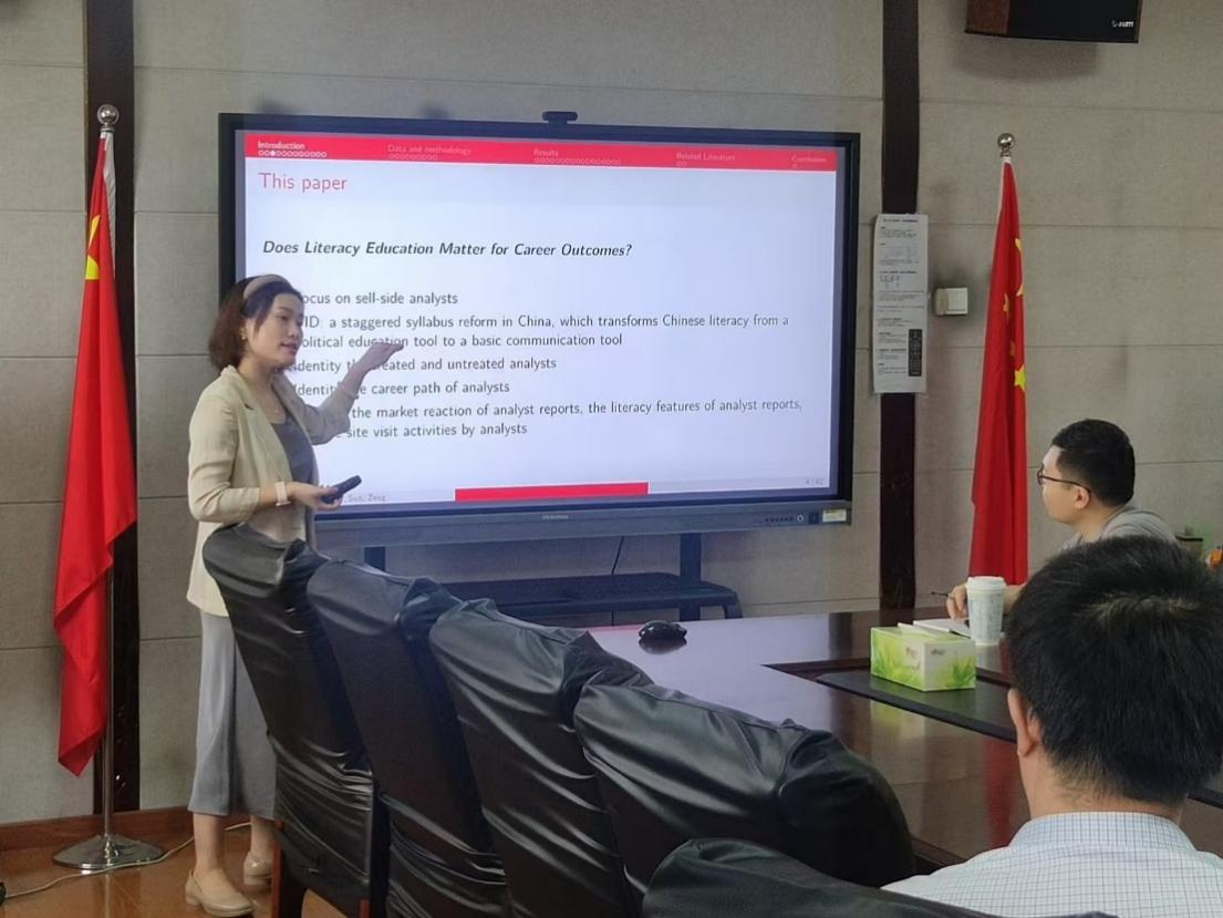 孙教授的该篇文章聚焦于卖方分析师这一职业群体,重点考察了中国1996年高中语文课程改革如何改变了语言与读写教育的内容和目标,从而塑造了分析师的沟通能力与职业发展路径。研究运用了差异化处理模型(DID),通过识别受改革影响的分析师群体,评估了该改革对分析师职业晋升、市场反应、调研活动及报告语言特征等方面的影响。文章的研究结果表明,接受过改革后语文教育的分析师相比未接受该教育的分析师在职业发展上展现出更快的晋升速度、更频繁的调研活动及市场对其报告的更强反应。论文宣讲结束后,孙教授与新澳彩师生就相关问题展开了热烈的学术讨论。