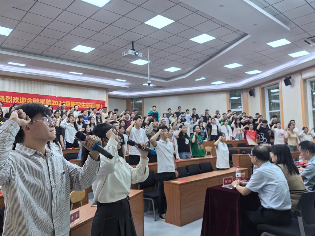会上,全体师生起立一起唱响《歌唱祖国》,为中华人民共和国成立75周年献礼。全体新生在典礼上庄严宣誓,慷慨激昂的誓言,展现了全体研究生勤奋进取的态度与追求卓越的承诺。新的起点就在脚下,新的征程即将开启,肩负时代重任的金院学子将满怀热忱与信念,投身学习与科研。