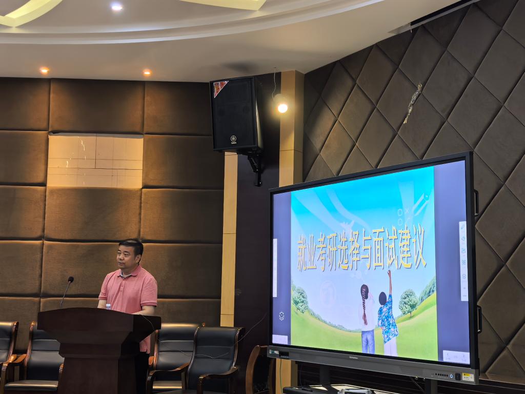 讲座伊始,王树民为2025届毕业生分析了当前金融专业的就业形势,并从考研择校与就业选择两个方面为同学提出合理建议。他从就业的热门专业和就业城市两个角度深入分析就业选择问题,帮助同学做好就业选择规划。王树民还为同学详细介绍了银行的分类与基本业务,为毕业后想入职银行的同学提供了求职参考。最后,王树民解答了同学们在面试中可能遇到的问题,并从面试官的角度为同学提出了面试建议,他希望同学脚踏实地,珍惜学生时光,增加实习经历,成就更好的自己。