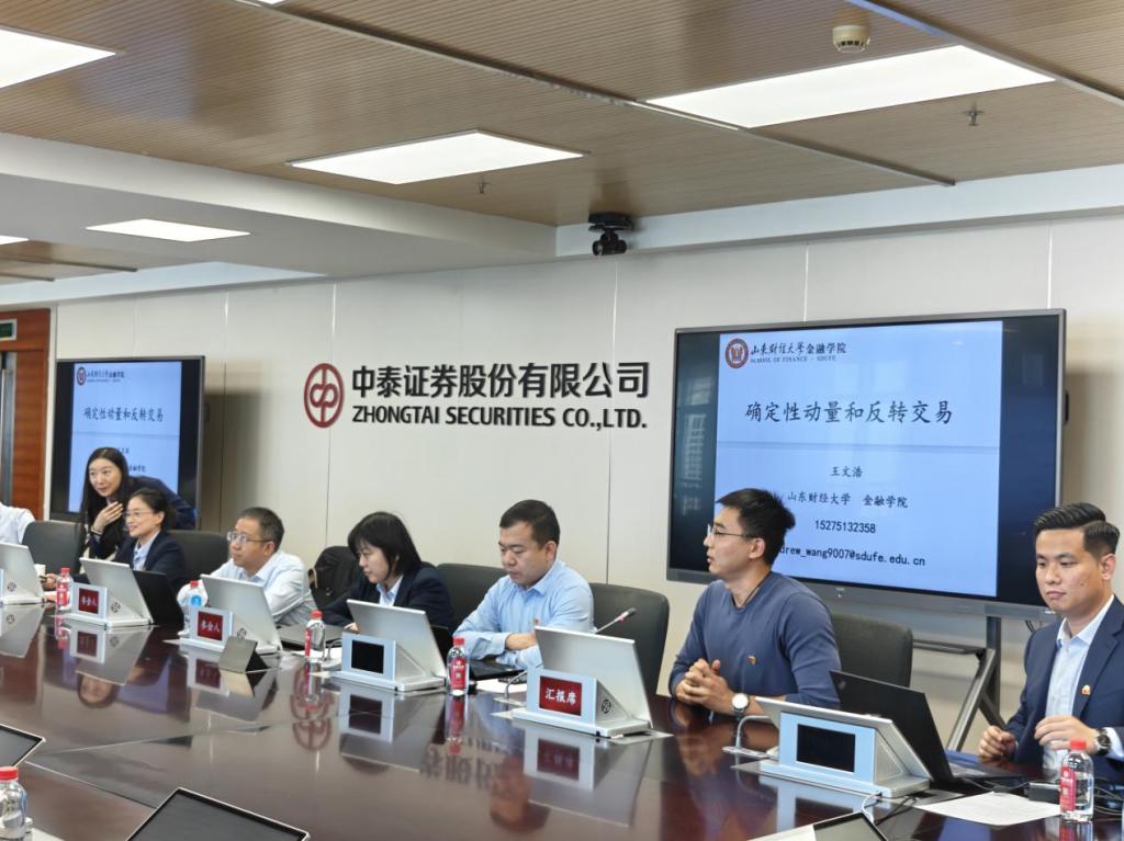 中泰证券投行委第六党支部王飞介绍了投行业务条线,新澳彩 教工第七党支部书记尹智超、海归教师代表王文浩副教授进行了业务交流专题汇报。尹智超副教授围绕“机器学习在财务舞弊识别中的应用”进行了专题分享,王文浩副教授就“中国特色金融研究——确定性动量和反转交易”进行了专题介绍。中泰证券证券发行审核部副总经理齐修超分别从“发现好的公司”与“识别坏的公司”两个角度进行了点评。