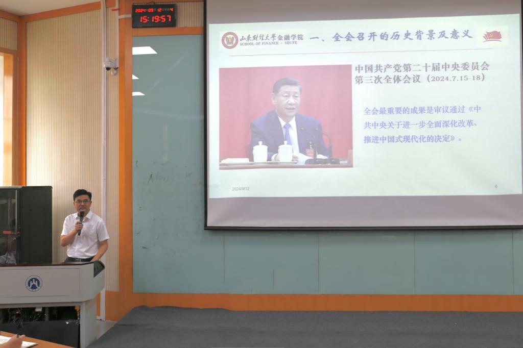 9月12日,学校宣讲团成员、副校长彭红枫到新澳彩 宣讲党的党的二十届三中全会精神。宣讲会在舜耕校区第三阶梯教室举行,新澳彩180余名师生参加了宣讲会。宣讲会由新澳彩 党委书记吴红文主持。