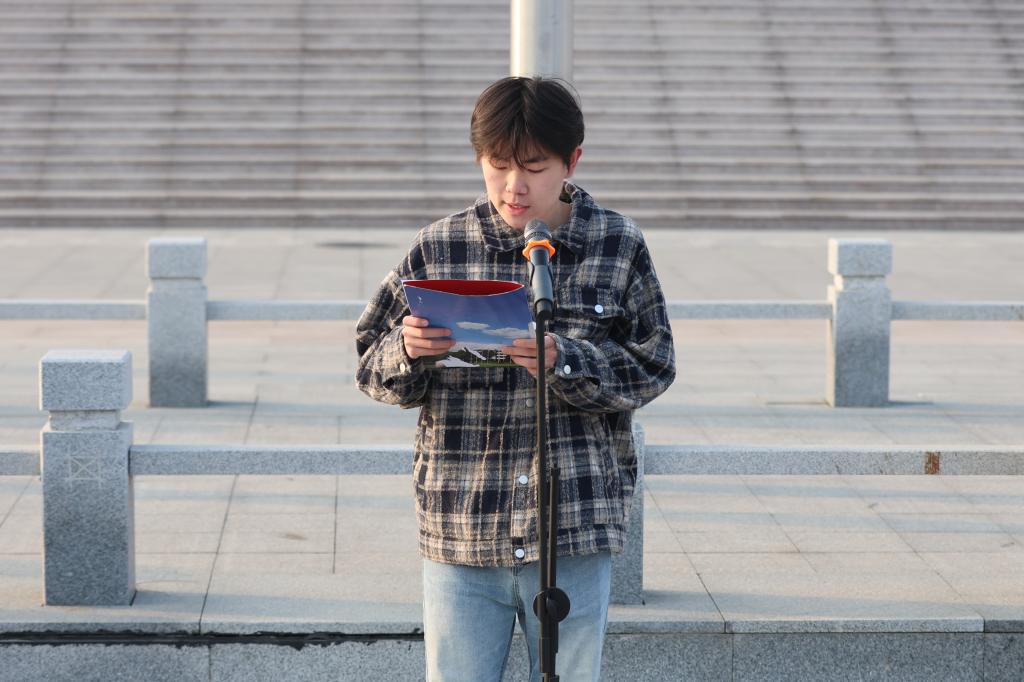 2024级学生代表王远珩在发言中表示,作为新时代大学生,同学们应积极参与志愿服务活动,传递爱与善意,在学习中发扬雷锋的“钉子”精神,勤奋刻苦。同时,他呼吁同学们将雷锋精神融入日常、化作经常,为民族复兴添砖加瓦,为祖国建设贡献力量。