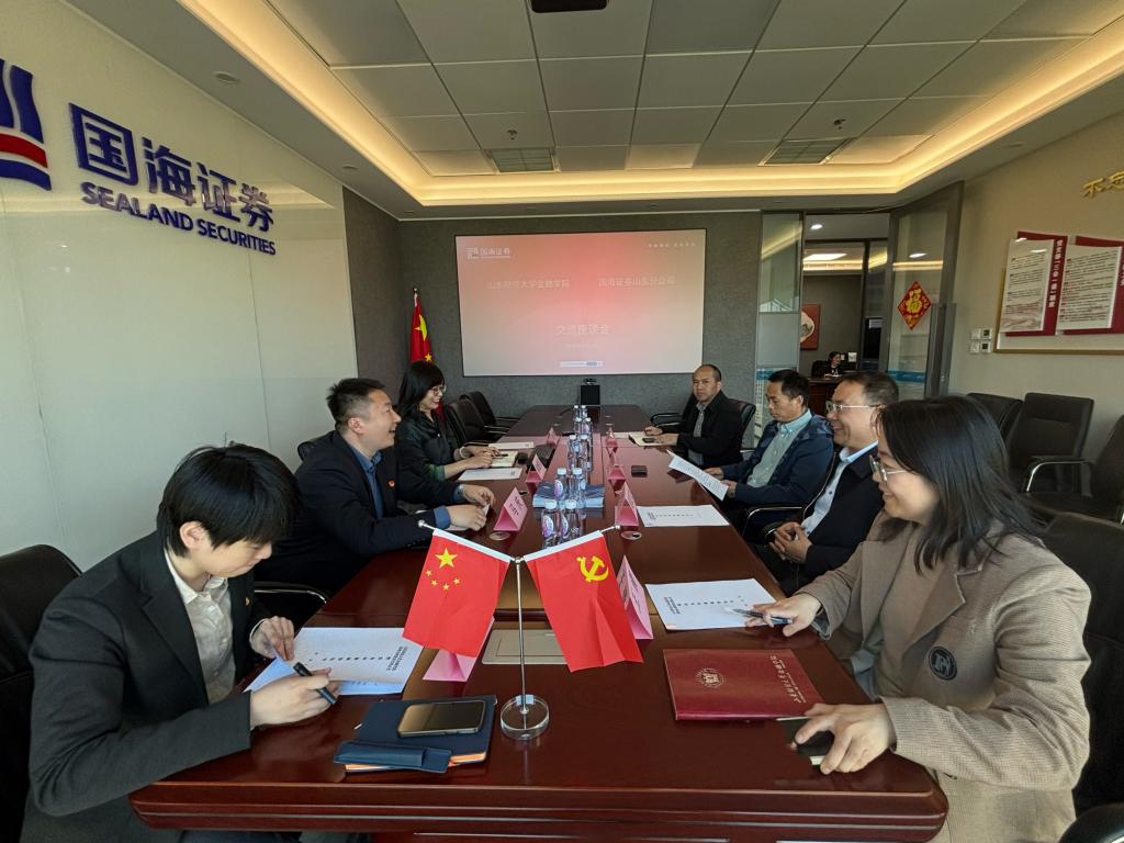 为进一步深化校企合作,拓宽毕业生就业渠道,4月14日,新澳彩 党委书记吴红文、副书记李开传、副院长王倩、学工办主任李勇一行前往国海证券山东分公司开展访企拓岗交流活动,国海证券山东分公司总经理马庆及相关部门负责人热情接待了新澳彩一行。