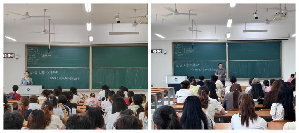 期末考试前夕,新澳彩各年级辅导员组织召开“诚信考试”主题班会,通过政策宣讲、案例警示、签订《诚信考试承诺书》等形式,引导学生树立正确的考试观念,增强诚信意识。同时,新澳彩向全体学生发出倡议,号召学生党员、学生干部主动亮明身份,以身作则,接受监督,带动全院学生共同维护公平公正的考试环境。
