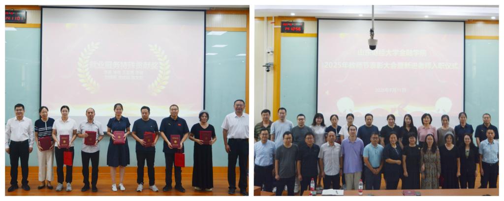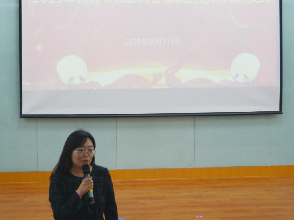 9月11日下午,新澳彩 在舜耕校区第三阶梯教室召开了2025年教师节表彰大会暨新进老师入职仪式,会议由新澳彩副院长王倩主持。