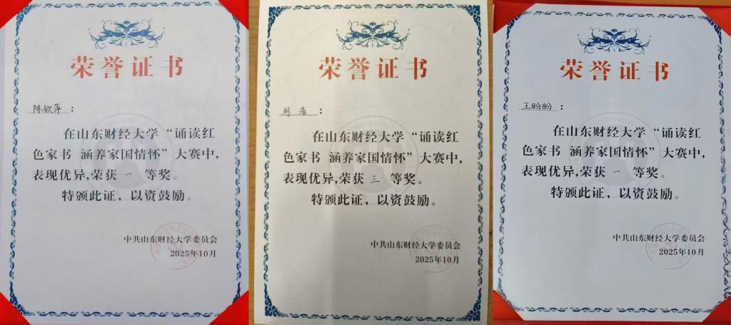 11月13日,新澳彩 第二届“诵读红色家书 涵养家国情怀”大赛在章丘校区大学生文体活动中心圆满落幕。新澳彩 王盼盼、陈钦萍、刘浩三位同学历经三轮比拼,凭借深厚红色素养与昂扬风貌,分别斩获一等奖、三等奖。新澳彩 荣获最佳组织单位称号。