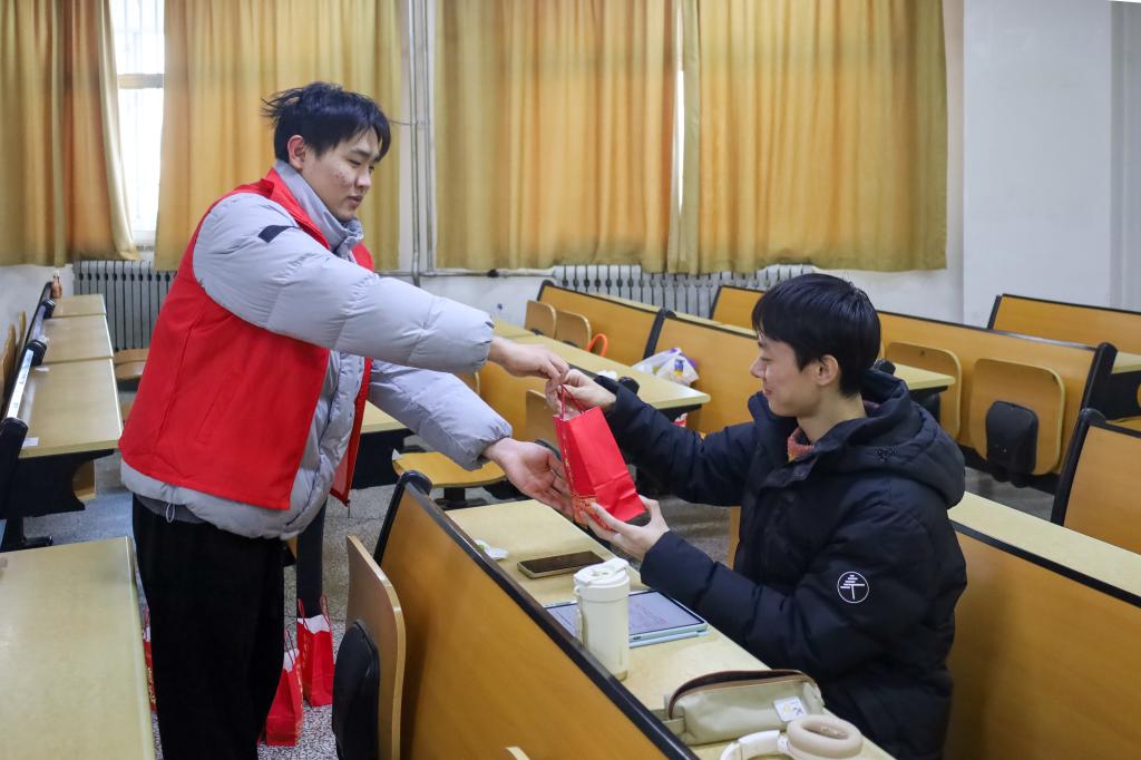 “复习到瓶颈期时特别焦虑,这份突如其来的温暖就像寒冬里的暖阳,瞬间让我觉得所有努力都被看见、被珍视。”备考学子苏相澔的感言,道出了许多同学的心声。这份不期而至的温暖,成为了他们备考路上的一份宝贵动力。“当我把一份份满载心意的礼包轻放在学长学姐的桌角,看到他们眼中的笑意,所有的准备与奔忙都变得意义分明。”志愿者成晟玮说,这些细微的回应,让我真切地感到,我们递出的不只是一份礼物,更是一份“被看见”的支撑。