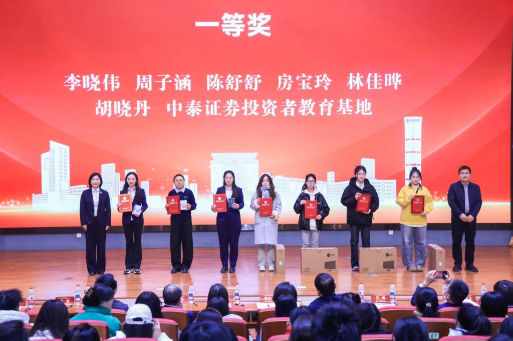赛事颁奖环节由活动嘉宾为获奖代表颁发证书。同时,为进一步推动投教与实践衔接,中泰证券在大会现场向10位表现优异的学生授予实习Offer。2026年,双方将进一步拓宽合作领域,丰富合作内涵,探索更多元的协同育人路径,致力于将该项目打造为校企合作典范,构建一套可复制、可推广的产教融合新模式,为推动金融人才高质量发展树立校企标杆。