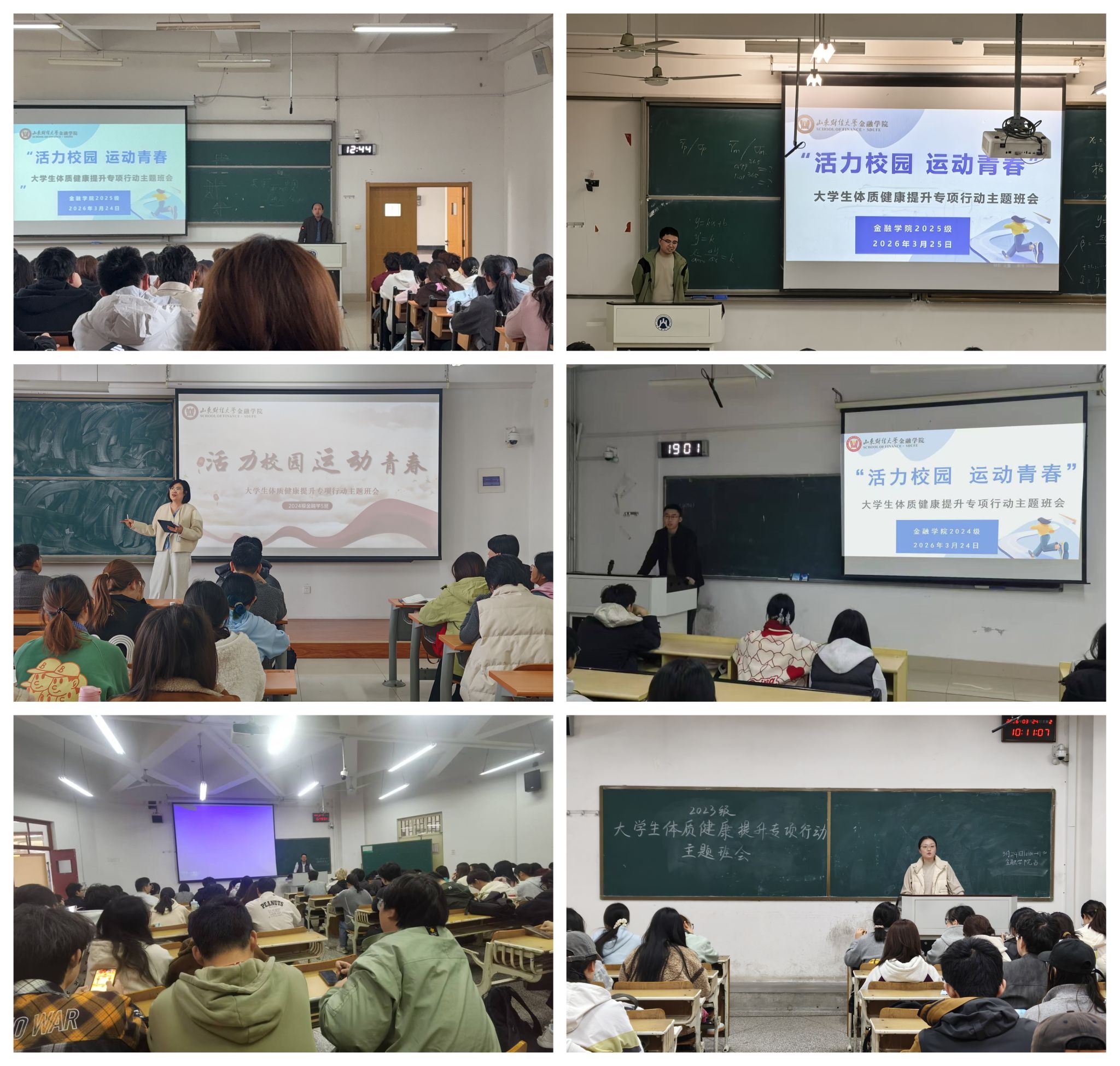 为落实学校“活力校园,运动青春”大学生体质健康提升专项行动部署,近日,新澳彩 在舜耕、章丘两校区同步召开主题班会,覆盖2023—2025级36个班级、1600余名师生,全面推进体质健康提升工作。