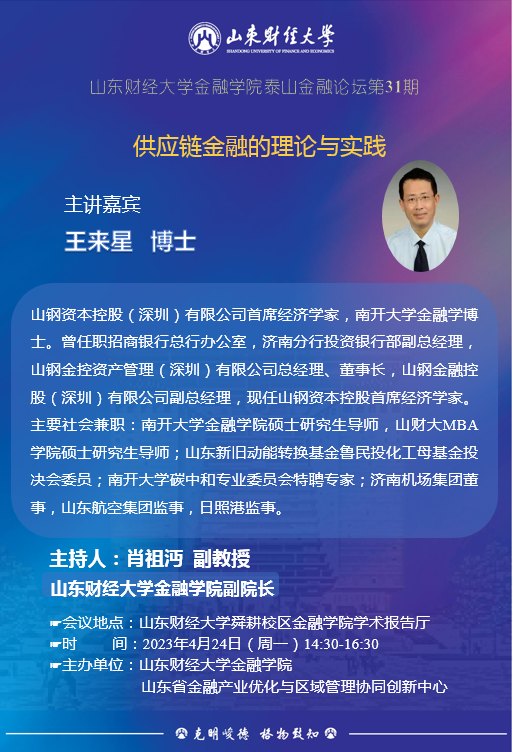 新澳彩 泰山金融论坛第31期:供应链金融的理论与实践